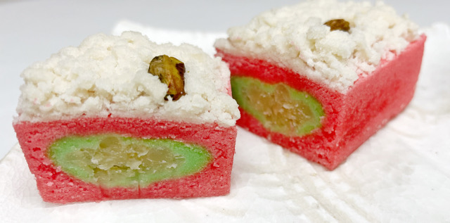 切り分けると新しい春の芽吹きを想わせる新緑の色が顔をのぞかせます。